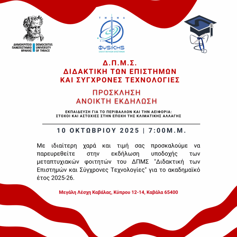 Πρόσκληση στην Εκδήλωση Έναρξης του ΔΠΜΣ “Διδακτική των Επιστημών και Σύγχρονες Τεχνολογίες”